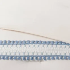 Dress your sleep space in ornate style with the Somerton Fringe-Stripe Comforter & Sheet Bedding Set from Thresholdâ˘. The 12-piece bedding set includes a comforter finished in a solid hue adorned with fringed stripes for a stunning look. It comes with pillow shams, decorative pillows, sheet sets and a bedskirt for a complete look. For added convenience, the multi-piece comforter bedding set boasts a year-round fabric construction that is machine washable.