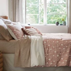 Your bedroom will be a beautiful garden oasis with this 12-Piece Floral Boho Comforter & Sheets Set from Thresholdâ˘. This comforter bedding set includes a soft-filled comforter adorned with a seamless white floral print against a terracotta pink backdrop, along with pillow shams, pillowcases, sheet sets and a bedskirt to give you loads of options for an updated bedroom with soft pops of color. For added convenience, the multi-piece comforter bedding set is crafted from a lightweight fabric for comfortable use and handling.