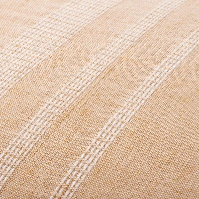 Bring plenty of comfort and style to your bedding by adding the Variegated Stripe Lumbar Throw Pillow from Hearth & Hand⢠with Magnolia to your pillow collection. This decorative pillow is adorned with white woven stripes running vertically over the variegated backdrop for a chic look, which is elevated further by the decorative fringed detail on either end. With an oversized construction featuring a soft, breathable exterior and generously filled interior, this lumbar accent pillow provides plenty of comfort while you sit, relax or lounge. Pair it with other embroidered and solid colored pillows for a coordinated and cohesive look, or mix and match with bright designs for additional flair.