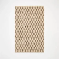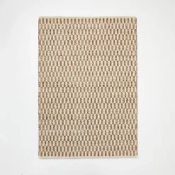 Cover your flooring in style with this Checkered Stripe Rug from Threshold⢠designed with Studio McGee. This handmade rectangular area rug showcases a checkered stripe woven pattern in brown and light beige hues for a neutral, modern look that blends with any decor. The 100% cotton backing offers durable use, while the flat pile height makes it perfect for frequently used areas like your living room, hallway or entryway.
